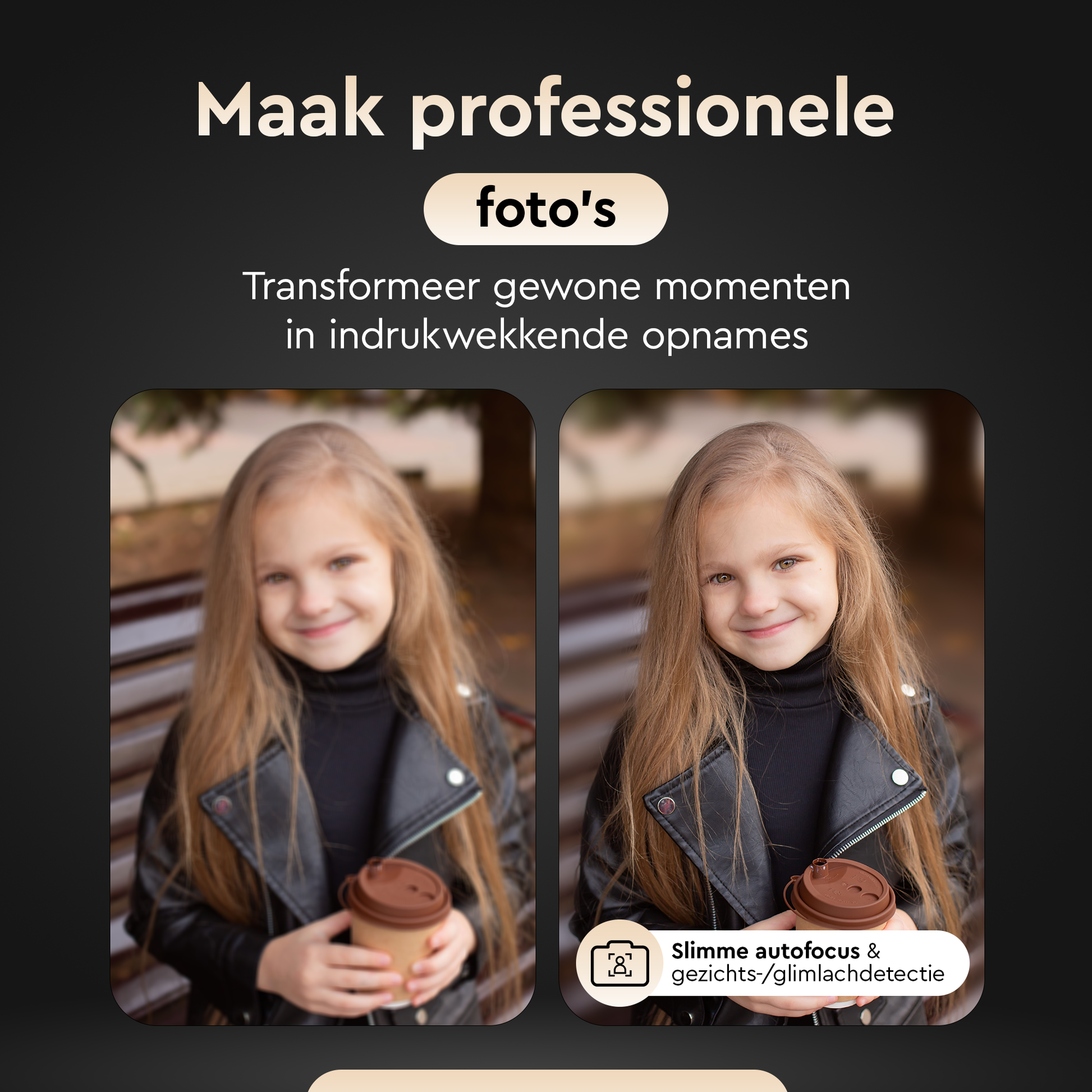 - Autofocus – Altijd scherpe foto's zonder handmatig scherpstellen.